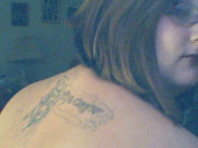 Most of mine are too old to post..Lost the color..Jack Daniels label on back of my left arm is still ok though..Flaming skull, in spider web mostly faded now.Red and yellow barely show up..My ex had a great one though..Great, because of course,it was my idea,lol..Curved lightning bolts runinng down her pelvic bone,to right near the top of her cooch..In the middle was written Splippery When Wet