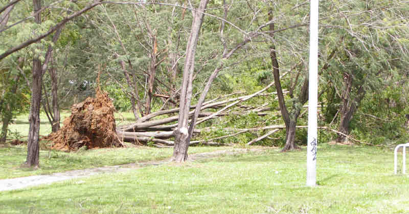 My hacienda's fine, but there are a lot of palm trees missing a frond or two, some African Mahogany trees pushed over ( they have the root systems of a stunted rose-bush, dangerous big things) and general minor chaos.