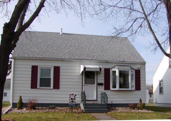 It's actually a little bigger than it looks--4 bedrooms, 1 bath, full, unfinished basement. The garage is out back.